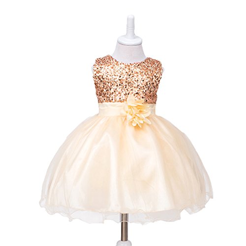 HUANQIUE Baby Girls Wedding Pageant Dress Princess Tutu Dress Apricot 2-3Y