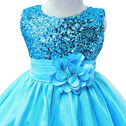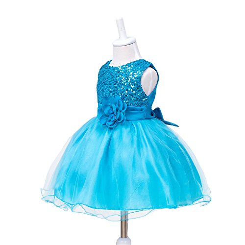 HUANQIUE Baby Girls Wedding Pageant Dress Princess Tutu Dress Blue 2-3Y
