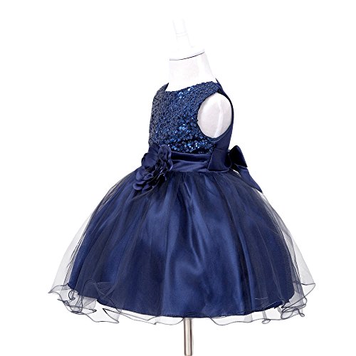 HUANQIUE Baby Girls Wedding Pageant Dress Princess Tutu Dress Navy 2-3Y