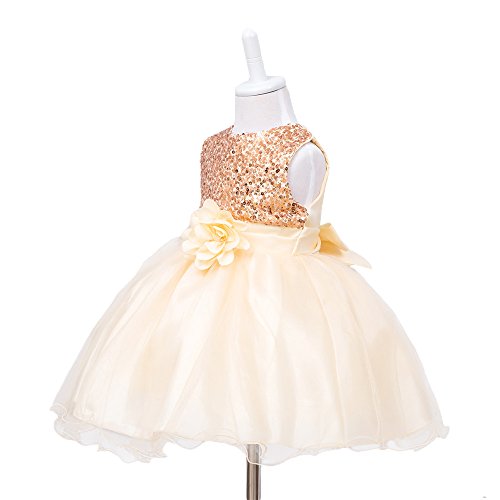HUANQIUE Baby Girls Wedding Pageant Dress Princess Tutu Dress Apricot 1-2Y