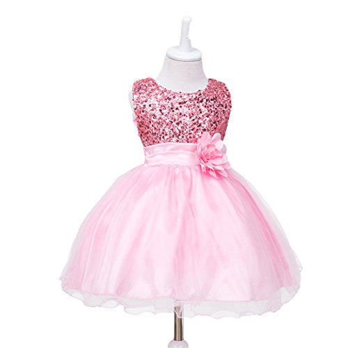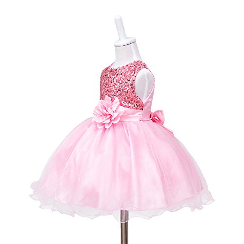 HUANQIUE Baby Girls Wedding Pageant Dress Princess Tutu Dress Pink 2-3Y