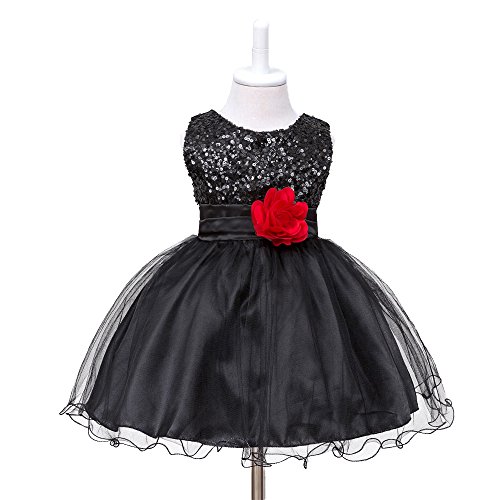 HUANQIUE Baby Girls Wedding Pageant Dress Princess Tutu Dress Black 1-2Y