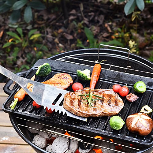 Extra-long Handle & Wide Hanging Hook - comfortable rubber handle protects hands from heat and provides better griping without gloves; fits on any grill tools holder and kitchen pegs for convenient storage