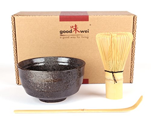 Our 3-piece Matcha Set includes a Matcha Bowl (Chawan), Bamboo Whisk (Chasen) with 80 bristles, and Matcha Spoon or Scoop (Chashaku).