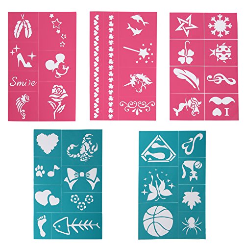 - CONSIDERATE DESIGN – Both high quality and high amount. Contains 1 white paint(5g), 1 black paint(5g), 4g of red, blue, green, purple, aqua blue, ocher paints. Fluorescent Colors: Contains 4g of green, gold, pink and saffron yellow paints. Glitter Colors: Contains 1.5g of gold and silver paints. And 30 painting stencils, 2 brushes, 2 sponges, 2 double-headed foam applicators are included.