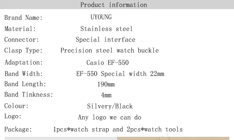 [해외] 새로운 핫 casio ef-550 고품질의 스테인레스 스틸 손목 22 미리메터 casio 시계 스트랩 팔찌 스트랩 팔찌