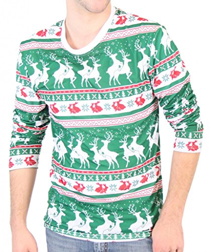 -. Title : Reindeers & Rabbits Pattern Long Sleeve Ugly Christmas T-Shirt