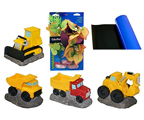 Blue Ribbon 7-Piece Aquarium Ornament Decoration Assortment, Kids Construction Theme