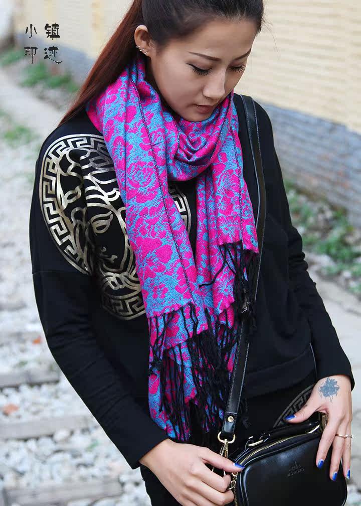 Rose Wool Scarf (peacock blue)