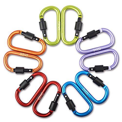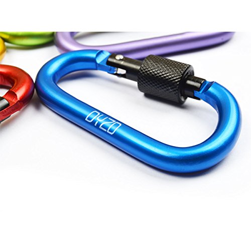 Material: high hardness aluminum alloy. Adopt polishing process, durable and wear resistance.Stainless steel screw locking carabiner key ring, key-chain, snap, hook, and for any outdoor equipment gear. Please note that the item not intended for climbing or safety equipment.