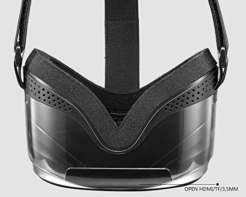-. Feature : Similar to watching the screen of 200 inches far away from 20 meters; 124° filed angle and 1080p HD Video. It's a 360 °VR BOX 3D Glasses Private Video Cinema Headset / HDMI IN helps you solve the problem of the input of more resources, and is perfectly compatible with HD devices, such as, for PS /TV/PC/XBOX. / Immersive panorama virtual reality experience along with surround output can expand your horizon and make you feel like on the scene when experiencing new games. / Supports Audio & Videos can be interacted synchronously, you can watch movies in your computer through 3D glasses. / Parts close to face employ soft form design, which is made of double-layer environmental protecting materials (The material is soft and breathable, and will not stimulate the skin of your face).