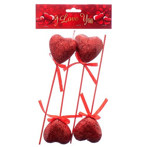 Valentine Heart Sticks (Pack of 4) Perfect For Valentine Party Favors, Flower Decorations, Valentine Home Decor, Greeting Cards Decorations