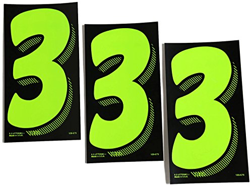 Color: 3's 3-D shaded design, adhesive windshield number. An inexpensive yet highly effective sales tool to advertise a year model or price. Sold by 3 packs {12 per pack}. Size: 7 1/2" tall x 4" wide. Neatly shrink wrapped in packs of a dozen with a chipboard backer to prevent curling during storage. Made of durable, waterproof vinyl, these non-fade numbers demand attention! Each number is slit on the back for easy application.Feature