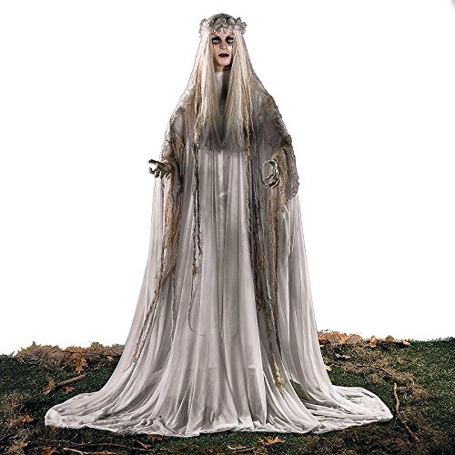 -. Feature : Hauntingly beautiful, this standing ghost / vision of Halloweens long gone by / Is she a jilted bride or an eerie reminder / Requires 2 "AA" batteries, not included / Adjusts to 5 ft. 7"