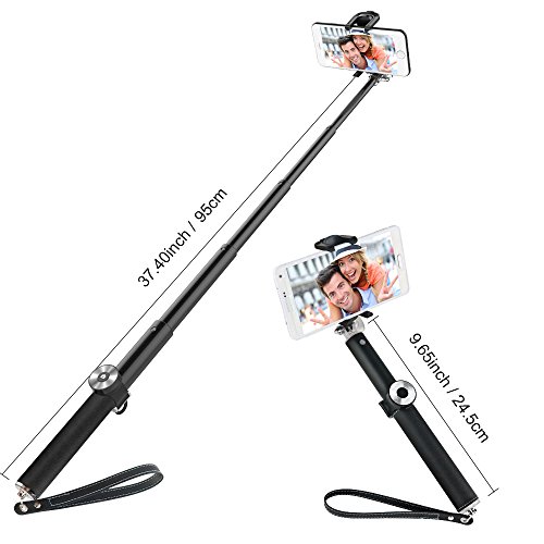 Noosy Selfie Stick with Bluetooth Remote ZOOM Function Shutter for iPhone 6/6 Plus/7 - Black