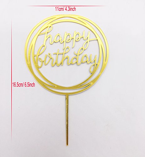 Happy Birthday Cake Topper, KOOTIPS Acrylic Gold Twinkle DIY Glitter First Birthday Cupcake Topper Cake Smash Candle Alternative Party Handmade (Round Happy Birthday)