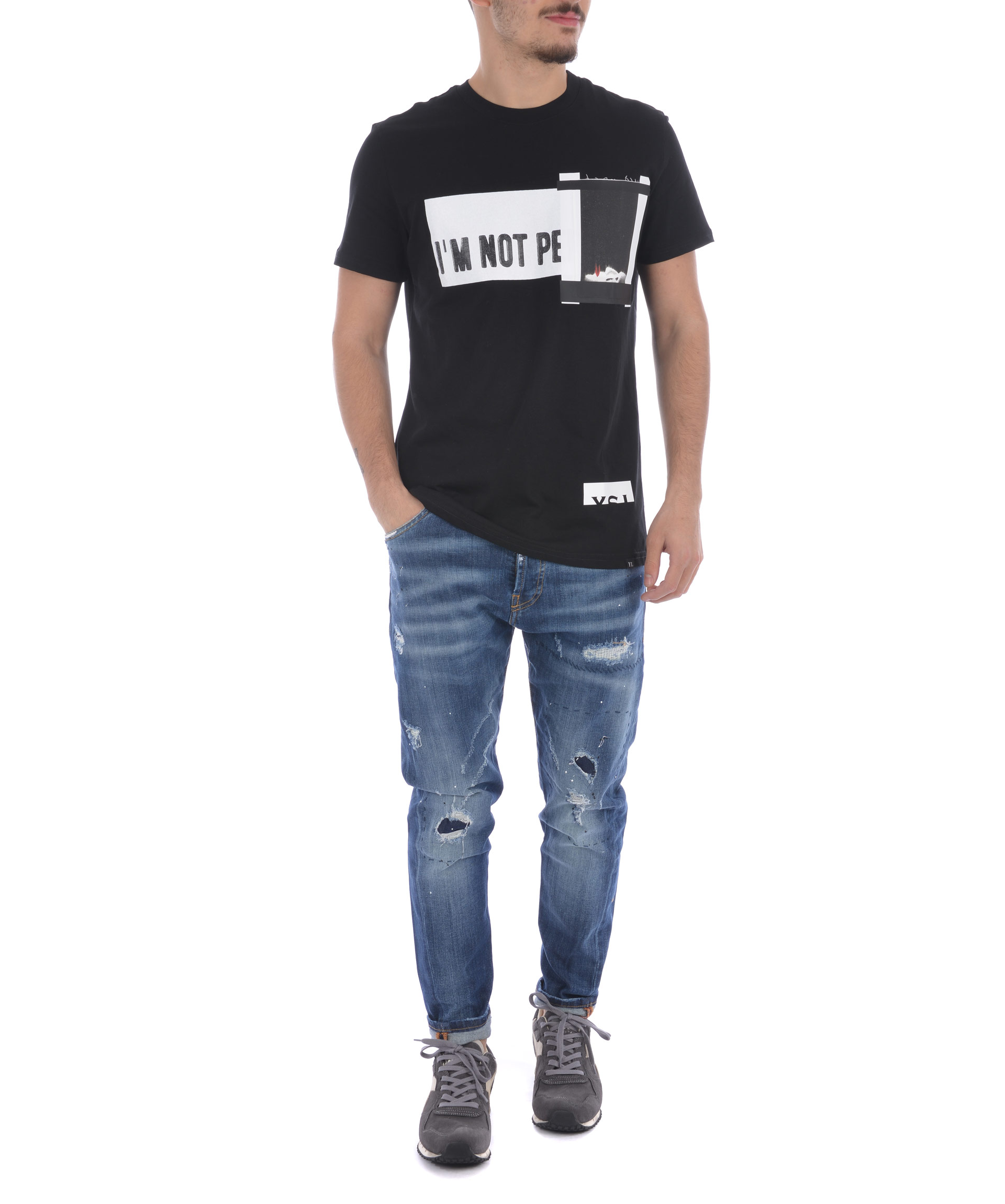 T-shirt Yes London in cotone Nero. Stampa frontale con applicazione in gomma. Girocollo. Manica corta. Misura in foto M 100% cotone