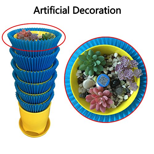 Artificial Succulent Plants and Pebbles- Artistic Decoration increases more visual effects; Another option is that put the real plants and soil into the top pot, and then you may need to pour the water from the second pot