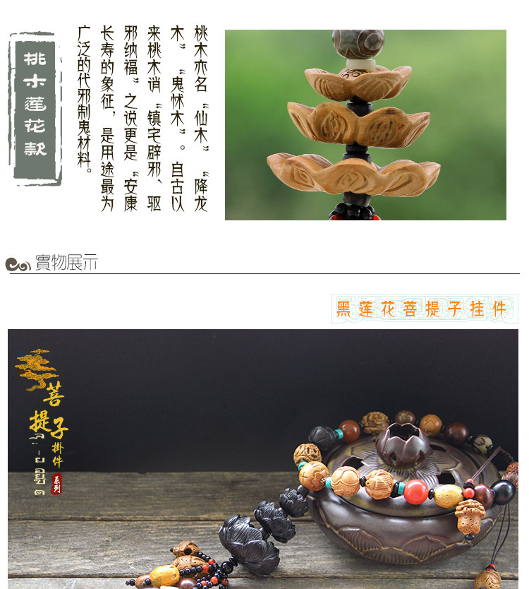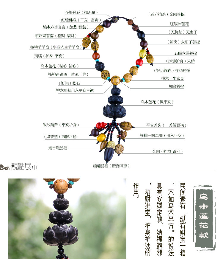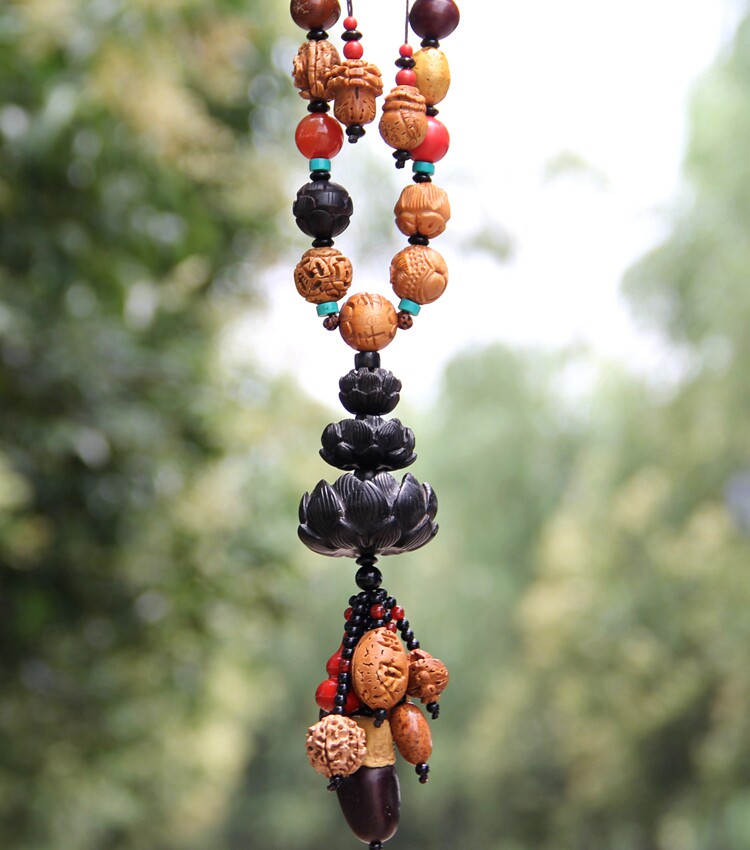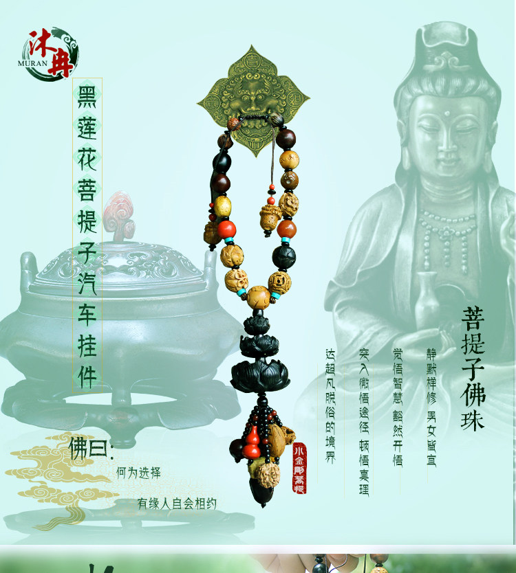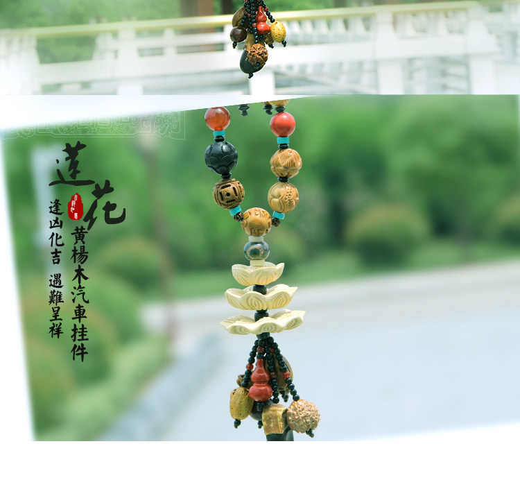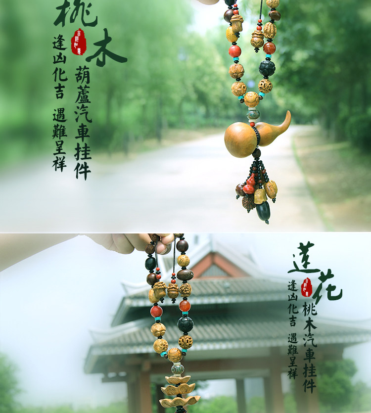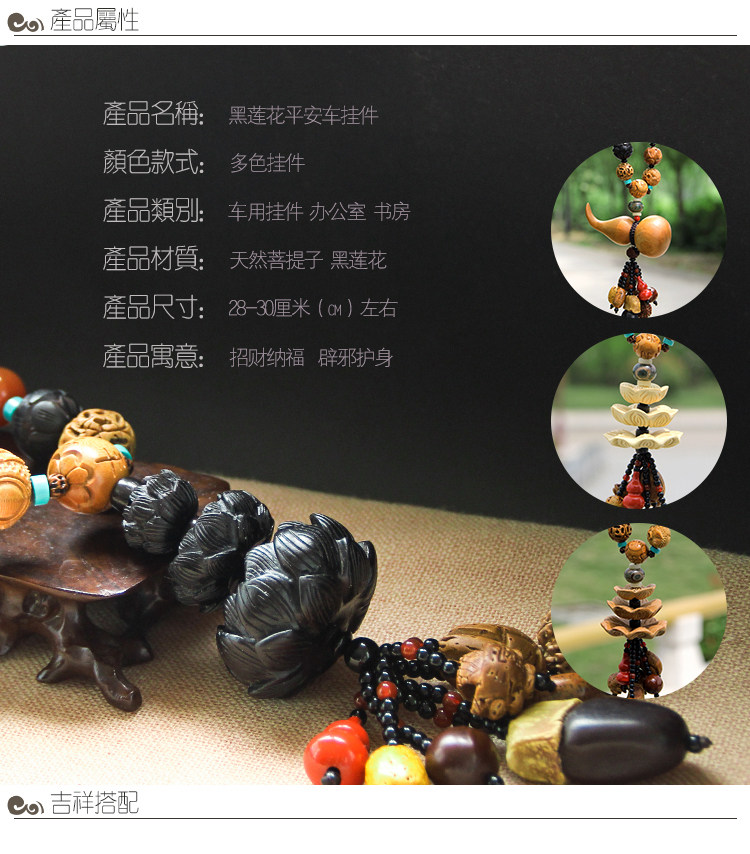 车挂件 高档佛珠菩提车挂 桃木乌木莲花 保平安符后视镜汽车挂件
