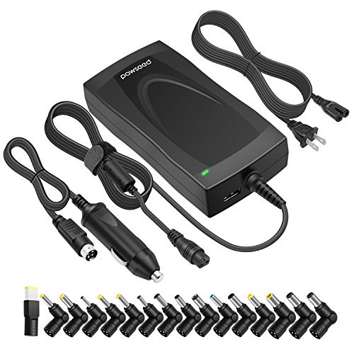 [AC + DC Car Plug] Powseed 90W 15V 16V 18.5V 19V 19.5V 20V Laptop Power Adapter Charger 5V2a USB for Acer Asus Toshiba Dell Lenovo IBM HP Compaq Samsung Sony Gateway Fujitsu Notebook Compatible Models