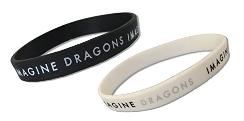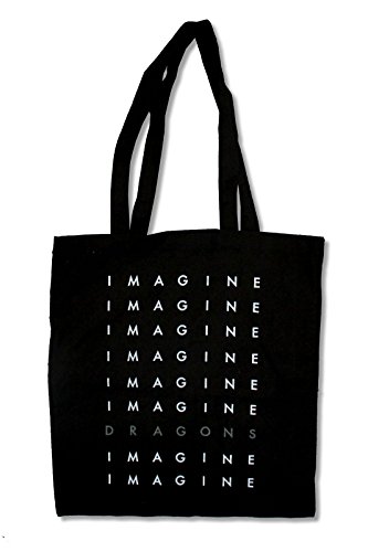 Product Description A black cloth tote bag with repeated Imagine Dragons logos printed on one side. Includes two silicone wristbands, one black and one white, each with repeated Imagine Dragons logos printed around the outside. 0