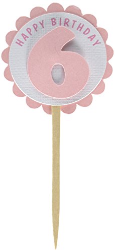 All About Details 6th Birthday Shimmer Pink Cupcake Toppers, Set of 12