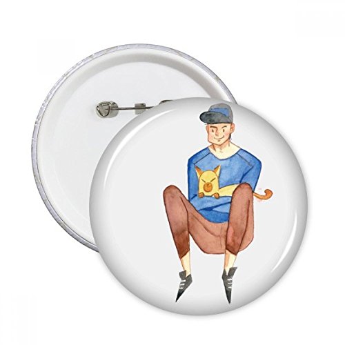 (DIYthinker)/Accessories/Hair Accessories/DIRECT FROM USA/Miaoji Painting Watercolor Cat Boys Round Pins Badge Button Clothing Decoration 5pcs Gift