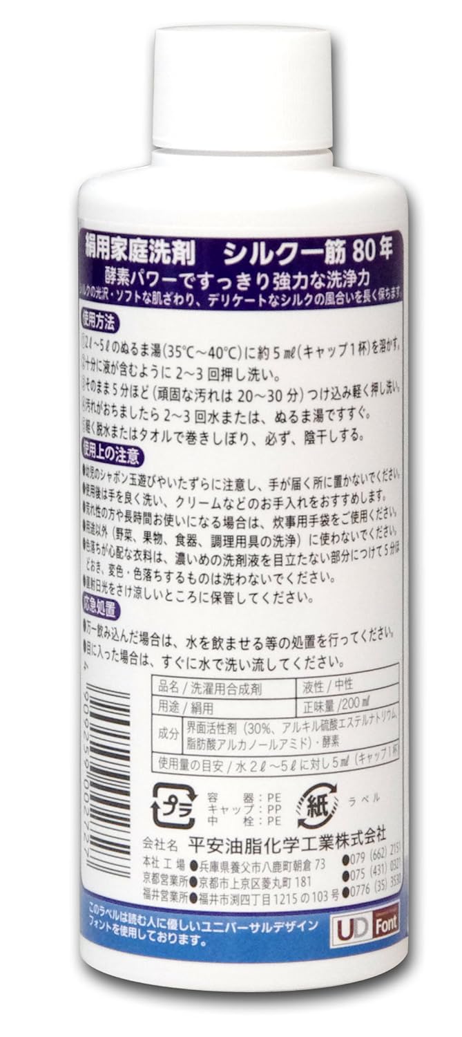 酵素パワーですっきり洗浄。繊維をいためずシルクの風合いが長続き。絹用家庭洗剤。
