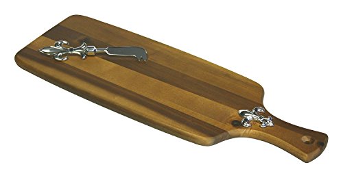 Mountain Woods Fleur-De-Lis Acacia Hardwood Paddle Cutting/Serving Board & Spreader Knife Set
