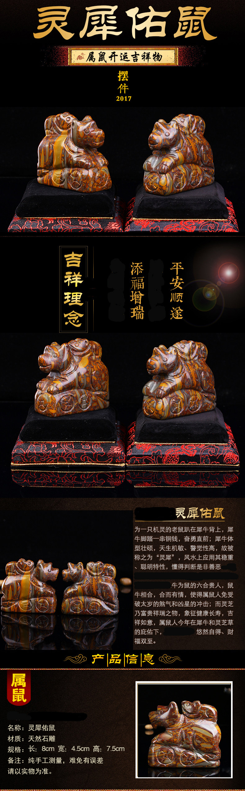 灵犀佑鼠石雕摆件 属鼠开运吉祥物