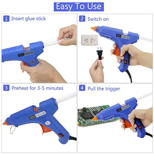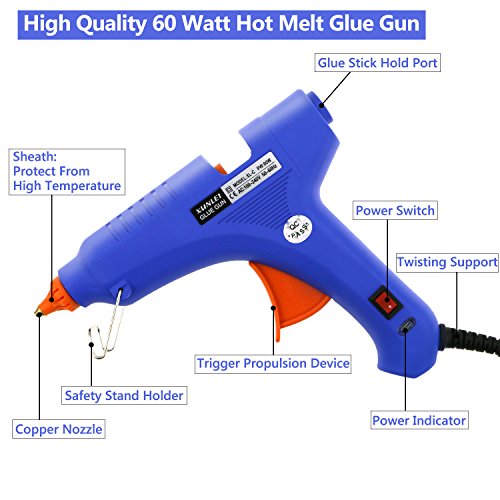 ※HEAT UP QUICKLY - 60W hot melt glue gun with 30 Pcs Melting Glue Sticks is made with high-tech electronic ceramic PTC, which instantly heats up within 3 minutes and melt the glue stick quickly.