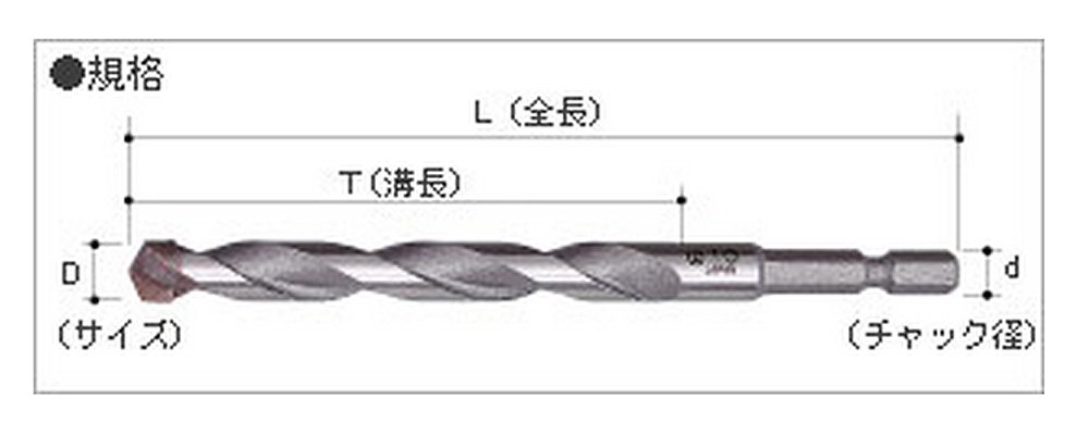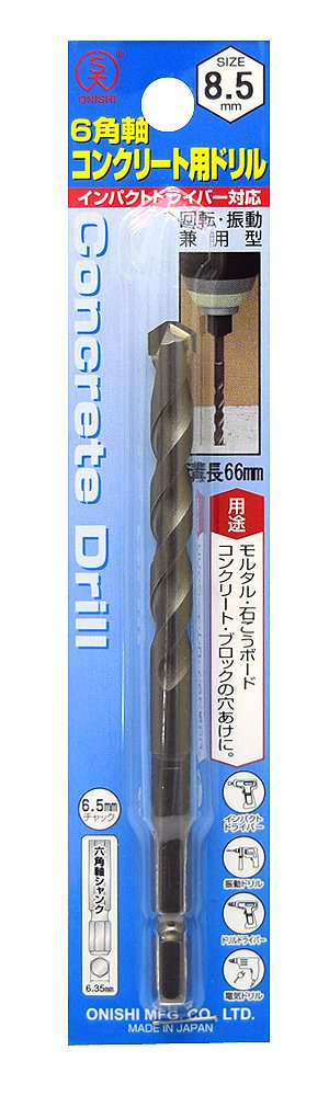 ● Hexagonal shaft (6.35 mm) finish can be mounted on the impact screwdriver with a single touch, easily used as a drill for concrete.