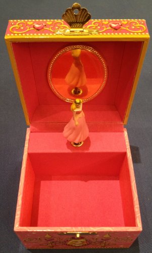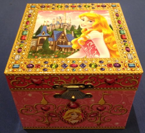 - Feature : Aurora musical jewelry box that plays "Once Upon A Dream" / Turn key on back and open lid to see Aurora figurine pirouette / Outside of the box features colorful jewels and filigree designs / Approximately 4 x 4 x 3 inches; Cardboard box that's felt lined inside with a sea shell clasp / BONUS Aurora double sided stamp included