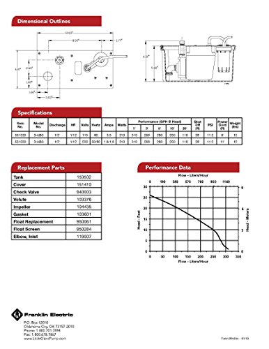 Little Giant 551320 3-ABS 115 Volt 310 GPH Shallow Pan Condensate Removal Pump