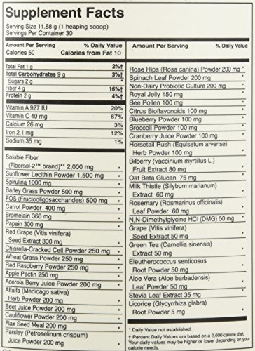 A dietary supplement to support detoxification functions.* Spectra Greens is a combination of nutrient rich vegetables, fruits, herbs, herbal extracts, Chlorella, Soy Lecithin, Royal Jelly, Bee Pollen, enzymes and probiotic cultures designed to support your bodys ability to cleanse, detoxify and rejuvenate.