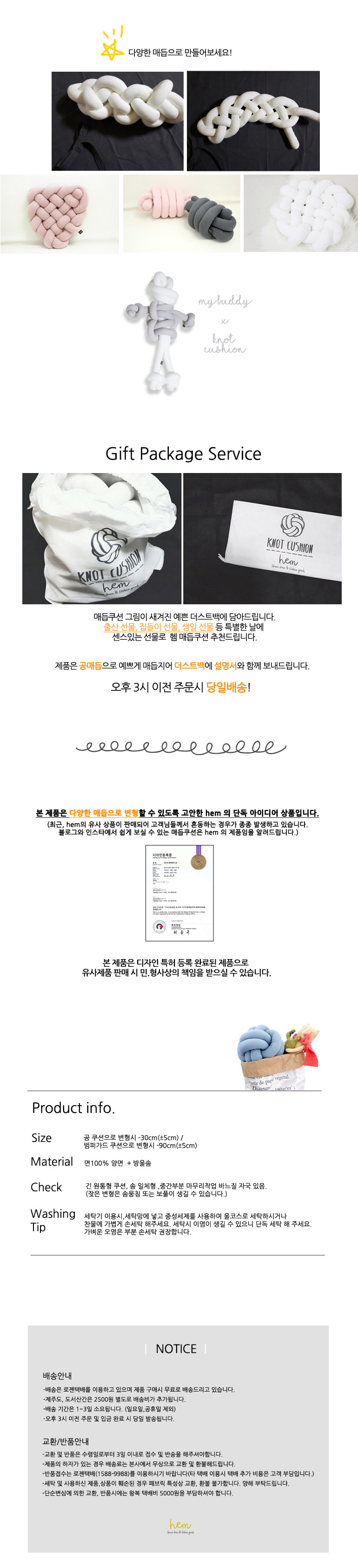 공모양 쿠션으로 매듭지어 배송드립니다.