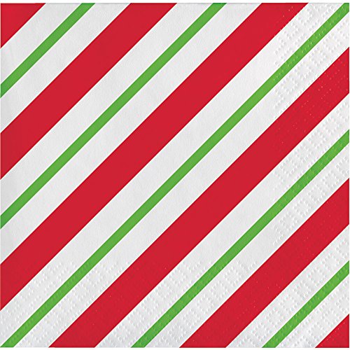 Creative Converting 16-Count Beverage Paper Napkins, Peppermint Party