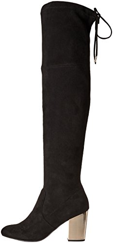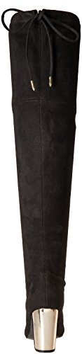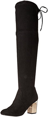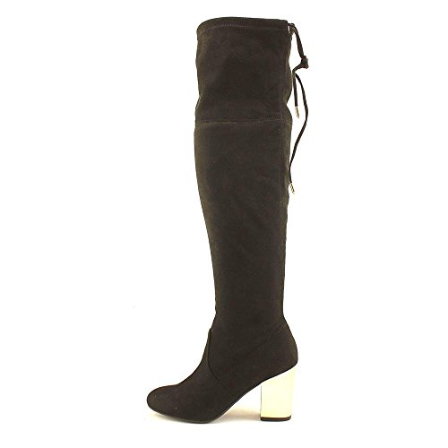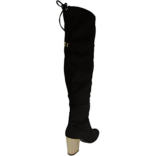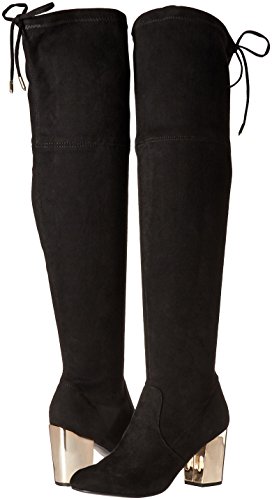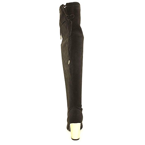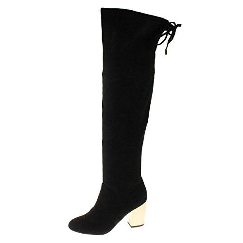 Product DescriptionOver-the-knee stiletto heel boot with tie detailing at back and gold heel.0