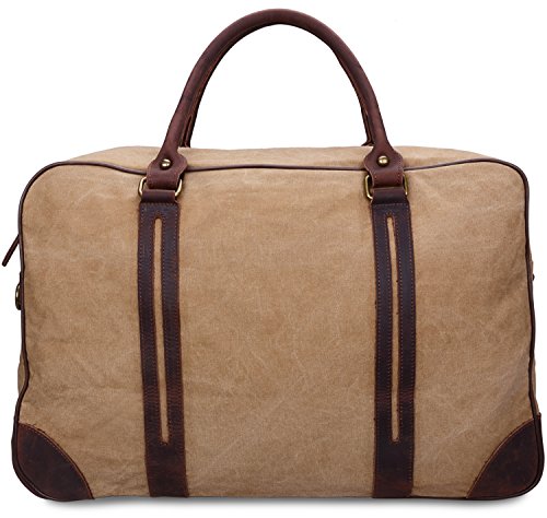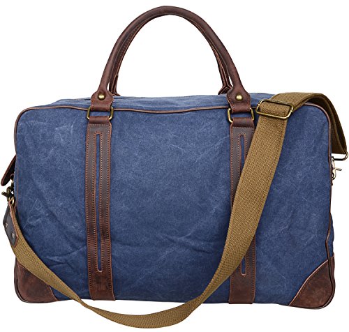 -. Brand : Altosy -. Department : boys -. Feature : Multi Compartments: A main large compartment with two oppen pockets and a zipper pockets. The inner pockets can fit for your small items or valuable goods; / Feature: The shoulder bag fit overhead or under seat for flight travel. Durable carry handle and an optional adjustable shoulder strap that can be used as a shoulder bag or handbag; / The distinguishing feature of Crazy-horse leather is that there are some disordered scratches on the surface. The scratches make product look retro and stylish. When you scrape it widely, the trace will be appeared. / Dimensions: (L)21" x (H)13.5" x (W)8"; Material: Good High Quality Canvas with Top Crazy Horse Genuine Leather; Weight: 1.33kg(2.93lbs); / About Our Service: If you have any questions about our product, please feel free to contact us by email, and our customer service team will be very happy to help out. -. Model : Y1827 -. PackageQuantity : 1 -. ProductGroup : Apparel -. ProductTypeName : LAGE -. Size : Large -. Title : Canvas Duffel Bags Genuine Leather Trim Travel Tote Shoulder Handbag Weekend Bag Altosy