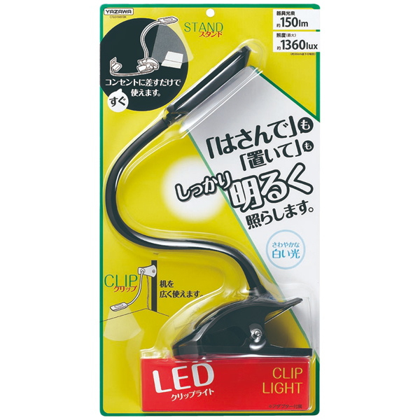 ●ヤザワ CFL04W01BK LEDクリップスタンドライト ブラック