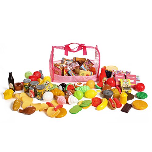 -. Feature : 130 Pieces Play Food Assortment - Huge Variety / Huge variety of familiar food items including: fruits, vegetables, fast food plus more! / This set is bound to keep your child entertained for hours! / This set is a great addition to your pretend kitchens / Great for pretend play breakfast, lunch, and dinner!