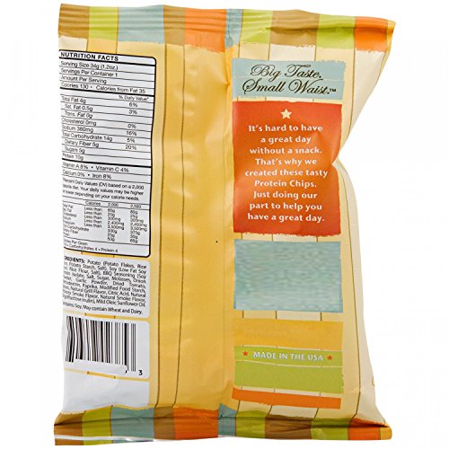 -. Binding : Health and Beauty -. Brand : NutriWise -. EAN : 0753677575981 -. Feature : High Protein - 10 grams Per Single Serving Bag / High Fiber - 5 Grams / Lower Fat - 4 grams Per Single Serving Bag / Each Bag is a Generous Single Serving (No Portioning Needed!) / Only 130 Calories Per Single Serving Bag -. IsAdultProduct : 0 -. Label : NutriWise -. Manufacturer : NutriWise -. PackageQuantity : 7 -. ProductGroup : Health and Beauty -. ProductTypeName : HEALTH_PERSONAL_CARE -. Publisher : NutriWise -. Studio : NutriWise -. Title : NutriWise - BBQ Potato Chips (7 bags) -. UPC : 753677575981