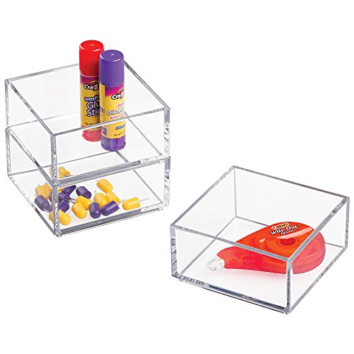mDesign Office Supplies Desk Drawer Organizer for Scissors, Pens, Markers, Highlighters, Tape - 4" x 4" x 2", Clear