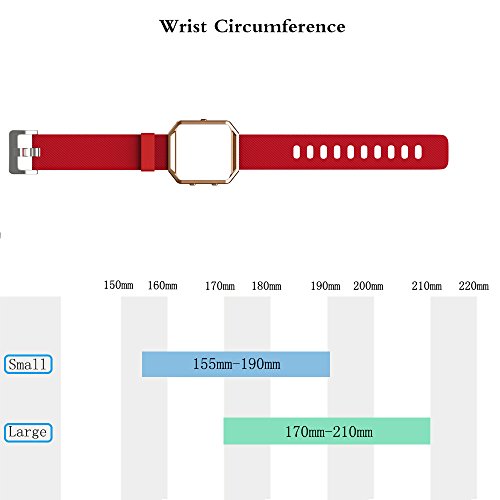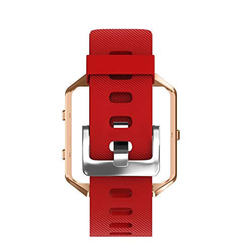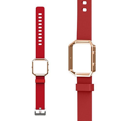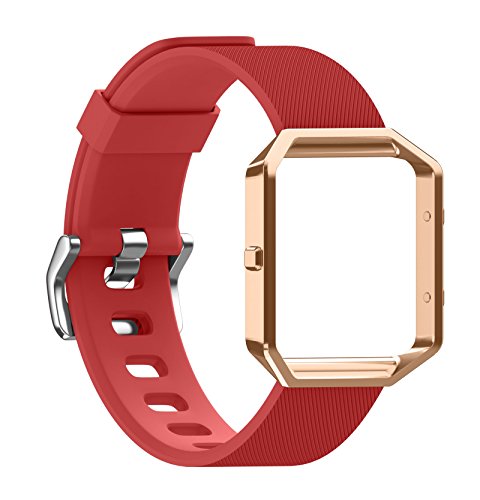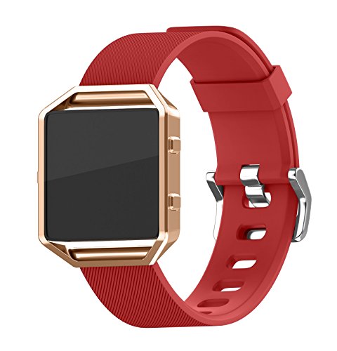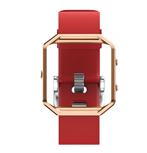 ANCOOL Fitbit Blaze Bands Silicone Replacement Sport Band with Rosegold Metal Frame for Fitbit Blaze (Large-Red with Rosegold Frame)