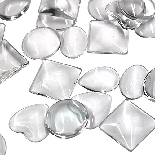 100 pcs Glass Dome Cabochons Clear Cabochons Tiles (Round, Oval, Square, Water Drop, Heart-shape) for Cameo Pendants Photo Craft Jewelry Making