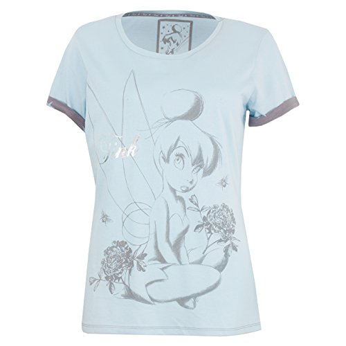 Womens stunning Tinkerbell Pajamas. Every Disney fan is sure to believe in fairies once they have this magical Tinkerbell pajama set. The short sleeve top features a large print of the little Pixie with a big attitude: Tinkerbell as well as her nickname 'Tink' in pretty silver with rolled up sleeves for comfort. The top comes with matching full length pajama bottoms which feature a star motif sure to leave any fan starrey eyed and ready for bedtime.Feature