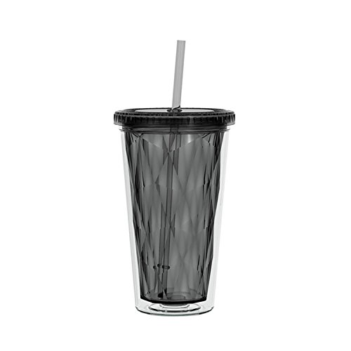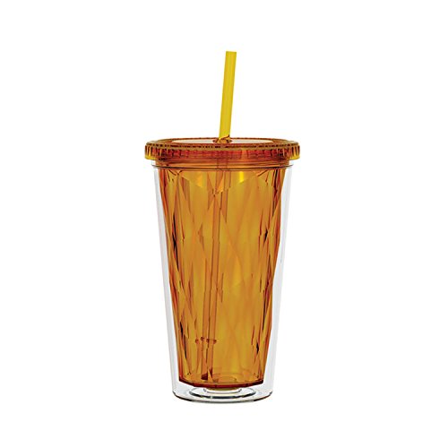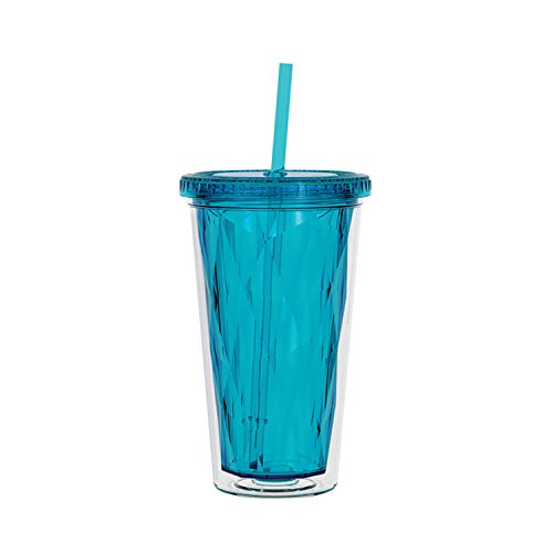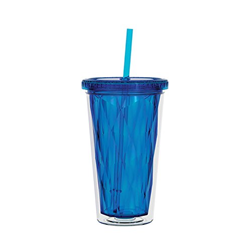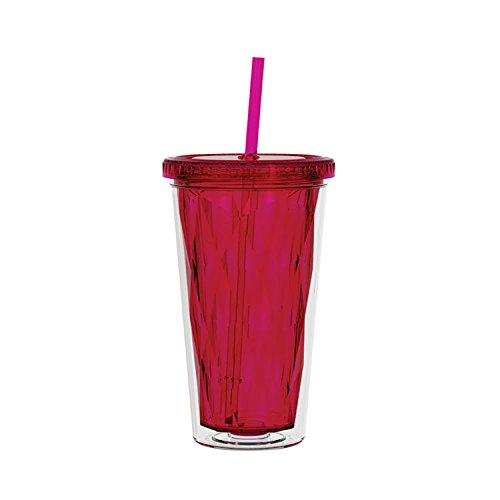 16oz. Double Wall Acrylic Tumbler with Colored Multi-Faceted inner liner and matching straw. Lid is threaded, with silicone seal gasket. For use with Hot or Cold liquids. BPA Free, not for use with Microwave or Freezer. Hand Washing is recommended due to unkown variations in individual washing machine temperature and abrasiveness. Machine wash at your own risk.