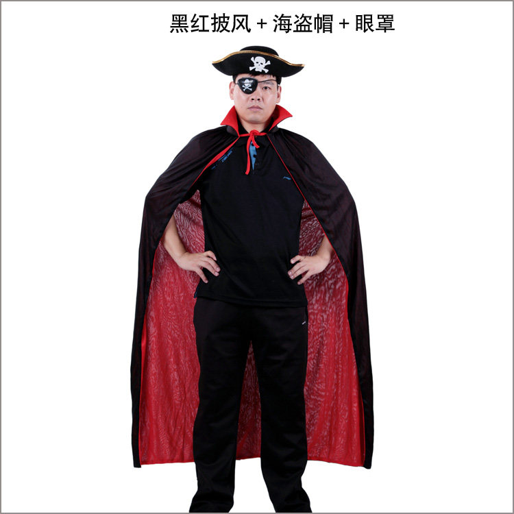 Is the product description: black and red cape + + pirate pirate hat goggles each each one,
