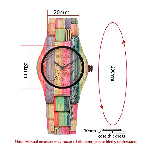 BEWELL Round fashion Leisure Bamboo pattern Wooden Quartz Wristwatch