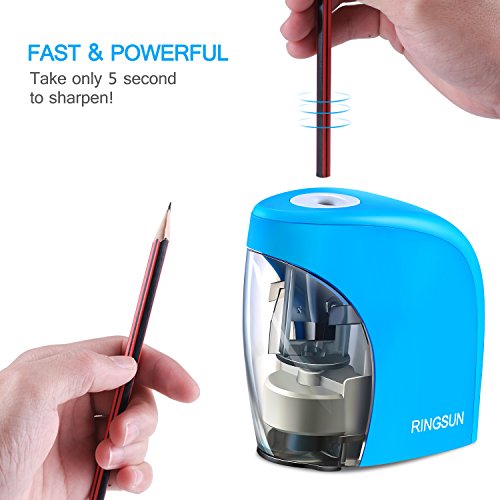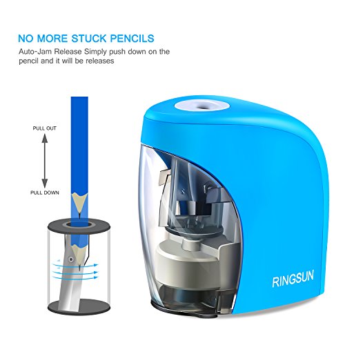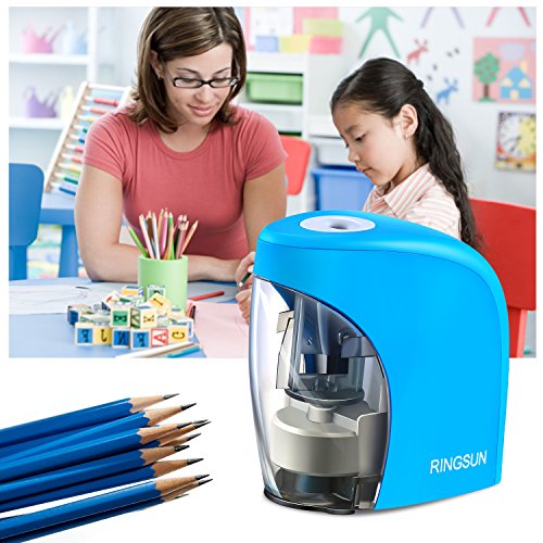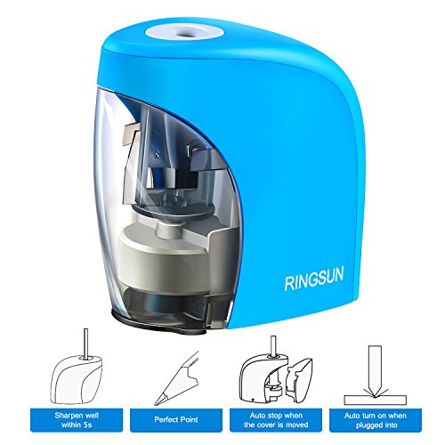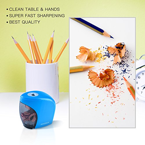 【Kids Classroom Friendly】Electric Pencil Sharpener with Stainless steel helical blade will Stop When the cover was removed, which will protect little kids Fingers from being hurt. And, auto-Stop Feature has smart sharpening sensor ensures the cutter stop when pencil is sharp. What a kid-friendly product it is!